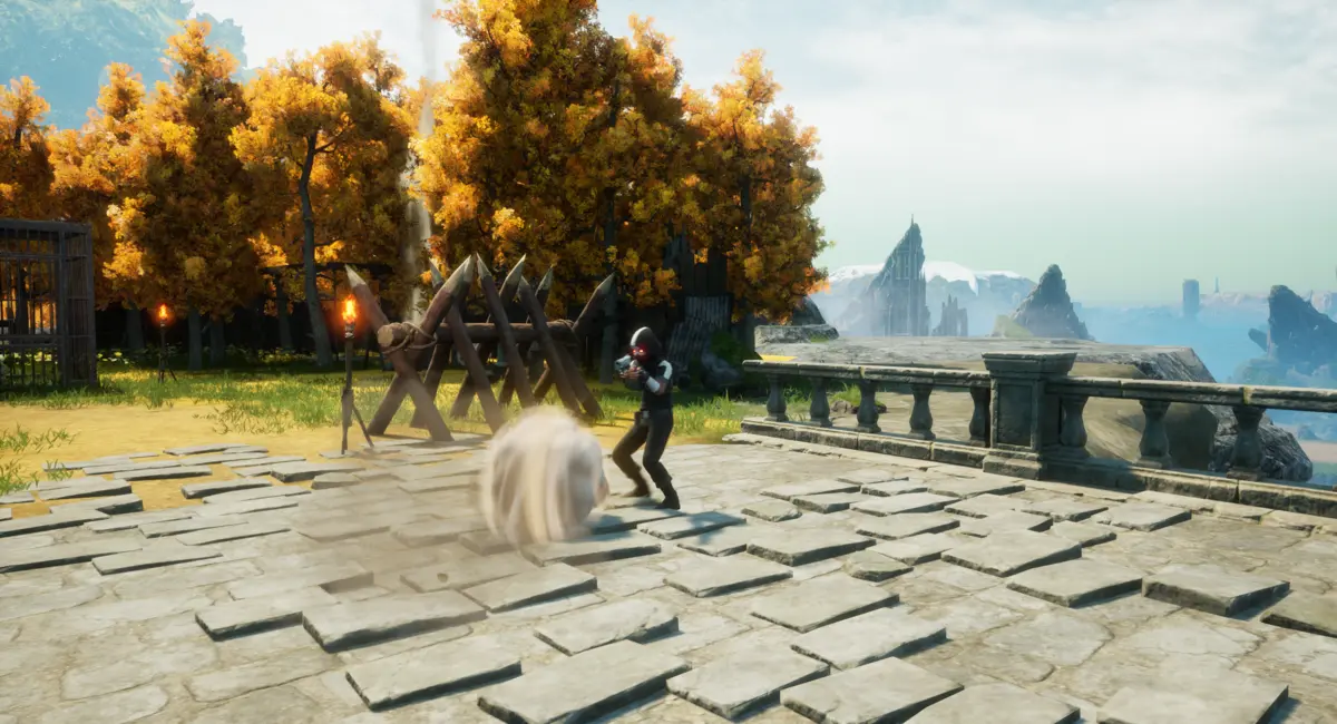 After walking a while, I encountered another human! When I tried to talk to them, however, they didn't say a word and just pointed a gun at me!