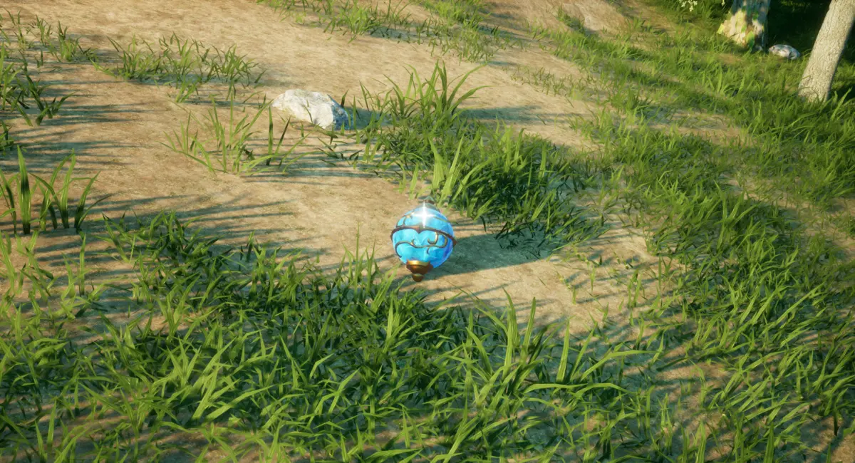 As I explored around on foot, I found a sphere that emits a peculiar blue light.